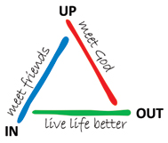 By ‘movements’, I mean our movement towards God (UP), towards others (IN) and towards the world (OUT). Others use a triangle to emphasise this balance between these movements in our lives.