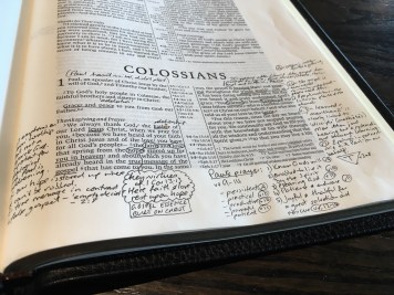 For me, and I know everyone is different, a physical book adds a tactility to the learning experience. In fact, I learn the text by copying out biblical text by hand. This year I’ve written out Galatians, Ephesians, Philippians, Colossians, and 1&2 Thessalonians. This allows me to become aware of the patterns, themes, messages of these books and increases my familiarity with them. I also, at times, listen to the bible being read as I follow on in my book or phone – that adds other ways to reflect on the text. It’s amazing the amount of times I’ve thought, ‘what? Eh? Jesus, what? Paul? Say again?!’